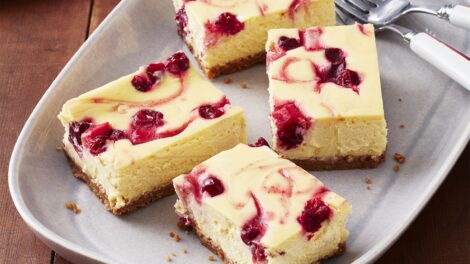 Now that the temperature is dropping and the daylight hours are shorter, comfort food is in order. Spoil yourself with tasty treats that smell and look inviting, too. This recipe and photo from Foodland Ontario, foodlandontario.ca, serve as motivation to cook up something special. Cheesecake is always a hit and these bars make a great...