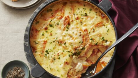 Make this delicious side dish for your next entertaining event. Recipe (and photo) from Foodland Ontario, foodlandontario.ca. Preparation Time:Â 30 minutes Cooking Time:Â 7 minutes Baking Time:Â 1 hour 10 minutes Serves 8 1/4 cup (50 mL) butter 2 cloves Ontario garlic, chopped 1 Ontario onion, chopped 1/4 cup (50 mL) all-purpose flour 1 tsp...