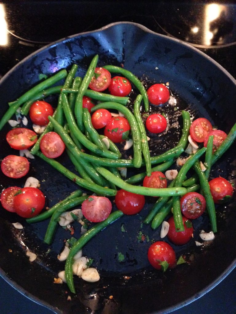 The salmon recipe totally made me feel like a gourmet chef. Normally I would shy away from a recipe that requires blanching, but it was really easy, and gave the beans the perfect crunchy texture. I made a couple minor tweaks; BBQ’d the salmon and added some chili flakes to the oil before sautéing the beans & tomatoes.