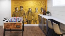 Paint is one of the easiest and most economical ways to downplay a feature. Lighter colours recede, so paint the feature you are trying to minimize and all surrounding walls the same lighter colour to not only downplay the less-than-ideal feature but bring cohesiveness to the space. To highlight a feature, select dark paint colours to draw the feature forward, so the eye naturally moves to what you are highlighting; paint the other walls a lighter coordinating colour to allow the feature to stand out. If you want to create a feature wall that highlights, paint is not the only way to achieve that, and you could consider some of the following materials that create a stunning focal point in your space.