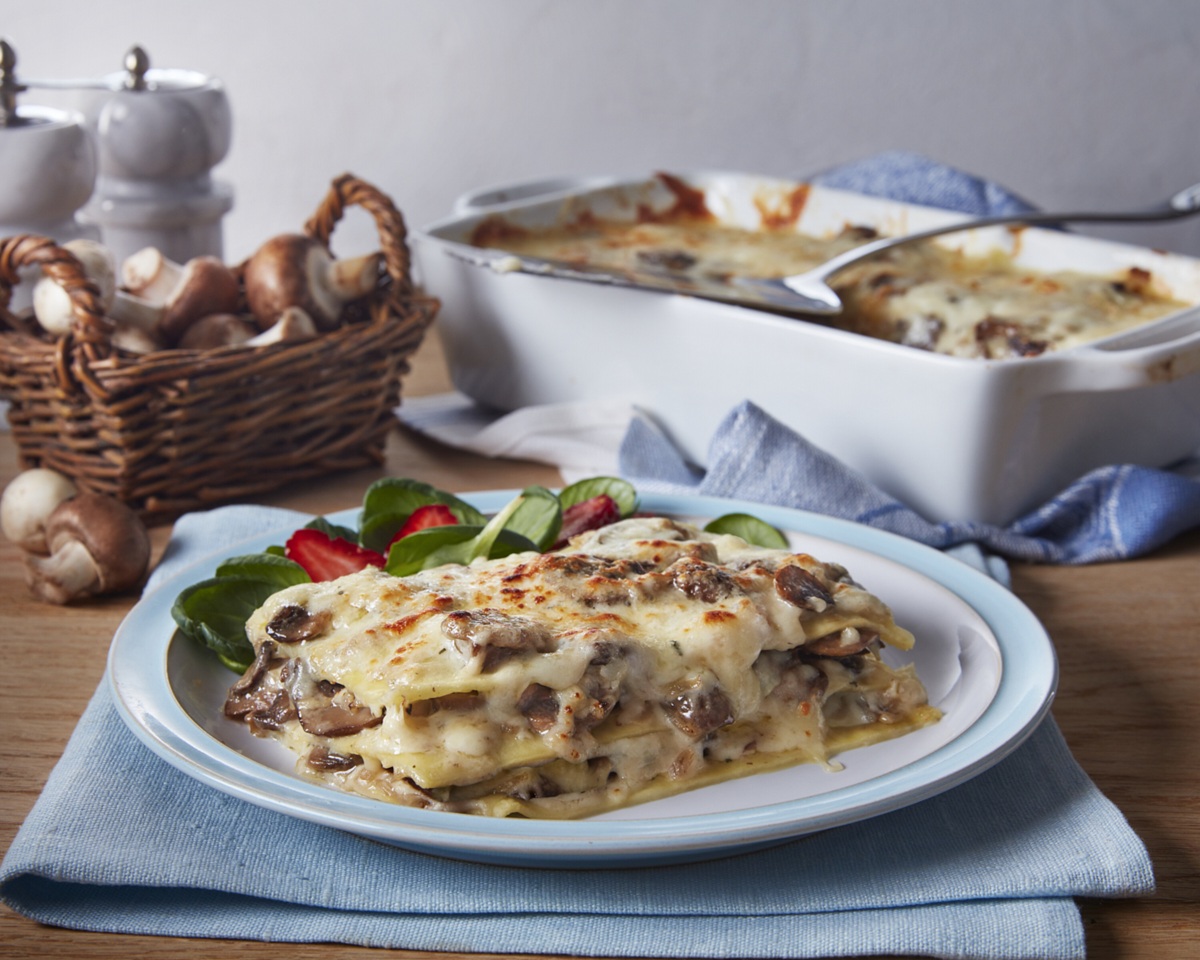 This vegetarian lasagna is made with an easy cream sauce as the base. Layer the noodles with mushrooms and cheese, then bake until bubbly.