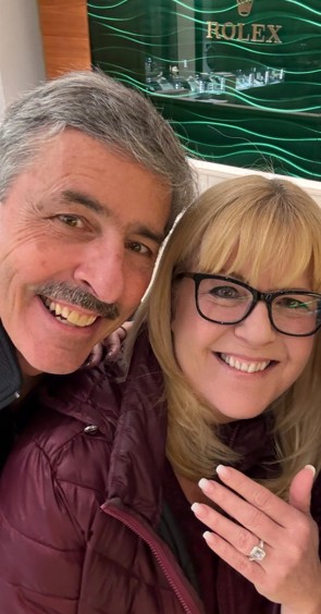 Caroline and Dan when they picked up her engagement ring at Howard Fine Jewellers.